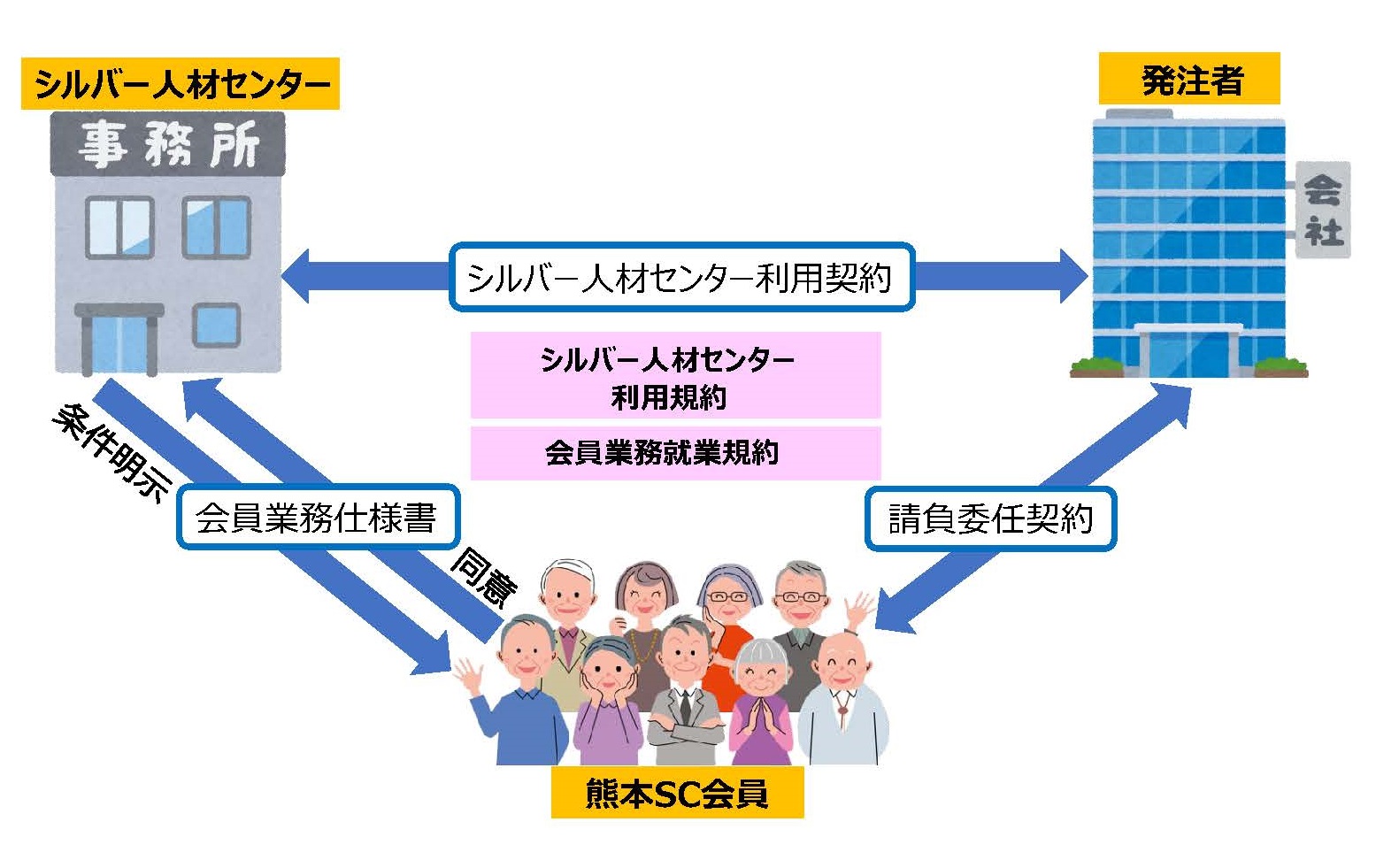 シルバー人材センターに業務を発注する企業、家庭、官公庁などをいいます。